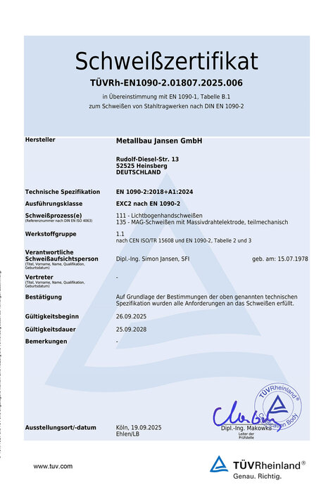 Höchste Qualität, Sicherheit und Konformität im Metallbau sind für uns selbstverständlich. Doch wir sprechen nicht nur über Qualität, wir belegen sie auch – durch vielfältige Qualifikationen und Mitgliedschaften in regionalen und überregionalen Verbänden. Auf unsere Kompetenz können Sie rundum vertrauen.