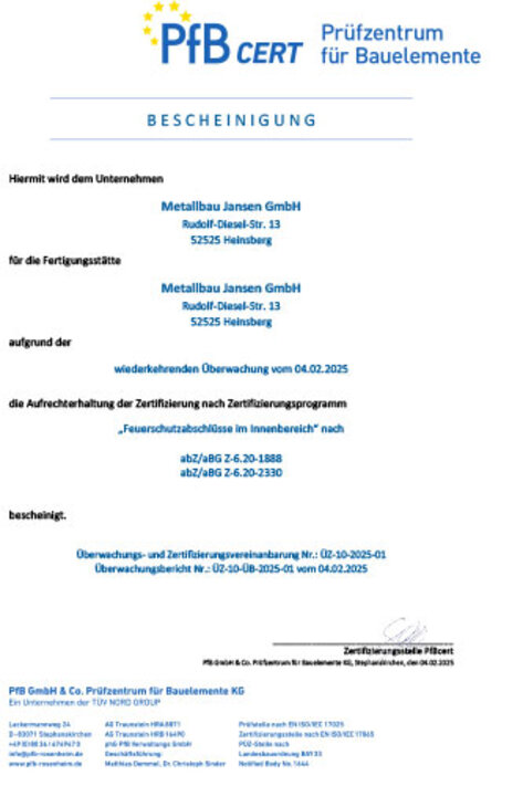 - Mitglied der Überwachungsgemeinschaft für Feuerschutz-, Rauch- und Schutzraumabschlüsse NRW e.V.
